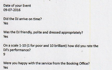 On a scale 1 – 10 how did you rate the DJ’s performance : 9